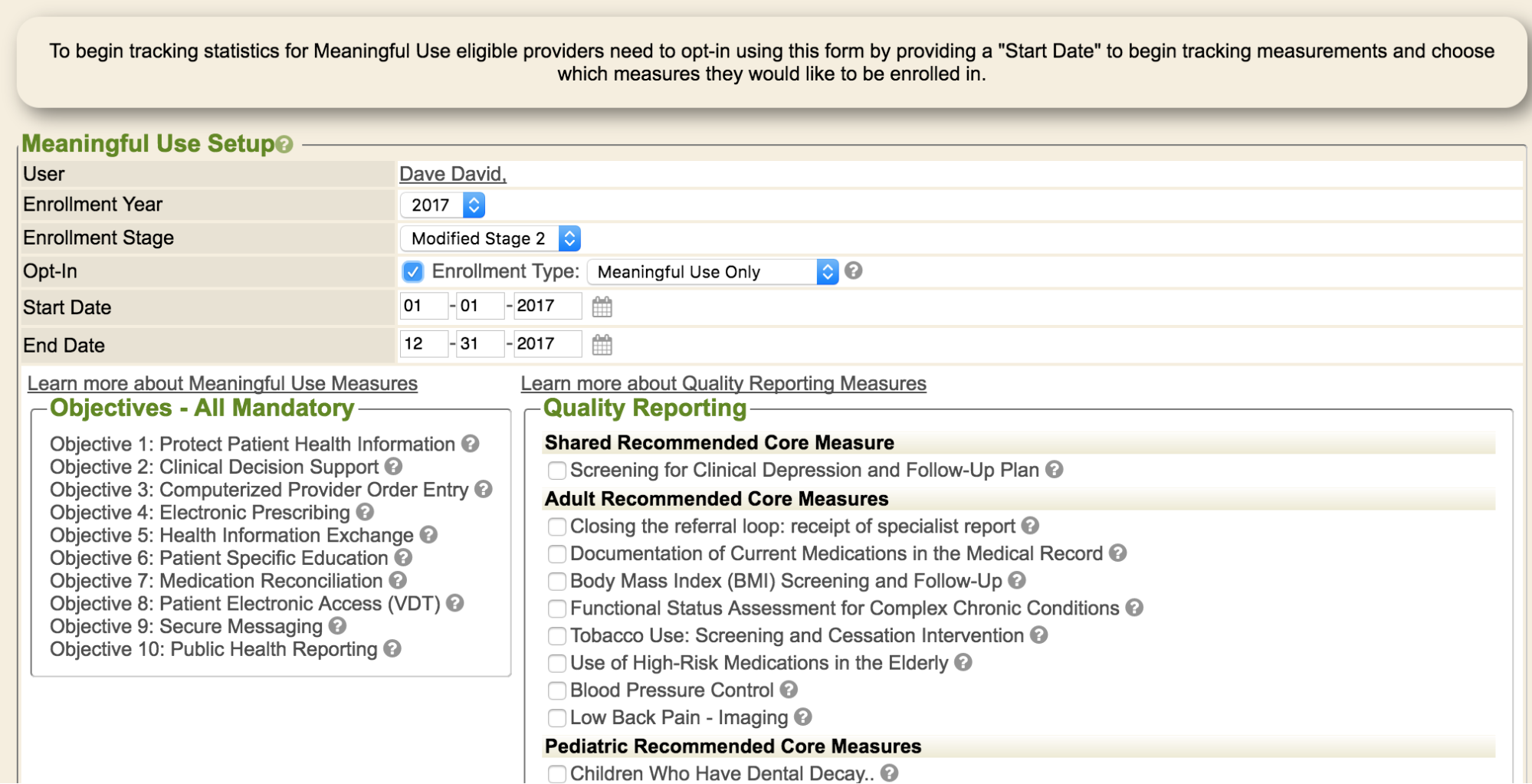 Enrolling, or opting in, is currently no different than previous years and though updates to WebChart’s enrollment process are slated for early 2017, do not be leery of the original Meaningful Use Setup. As the comment period comes to an end and measures are finalized, MIE will be updating the applicable measures to reflect the Advancing Care Information, Improvement Activities, and Quality categories. But in the meantime, DO NOT stop your current processes. In order to capture the necessary data, continue your workflows as before.